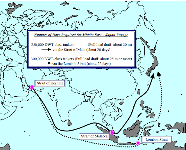 …The volume of oil shipped to Japan from the Middle East is evenly split between Lombok and the Straits of Malacca…
